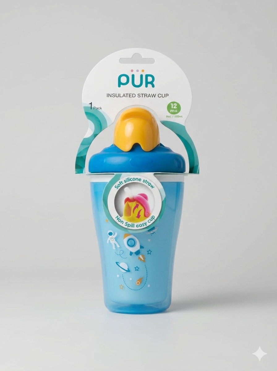The PUR Insulated Straw Cup is designed to keep your baby’s drinks at the right temperature while making drinking easy and mess-free. The double-wall insulation helps maintain the temperature of liquids, keeping cold drinks cool for longer periods. Its soft, spill-resistant straw allows babies to sip comfortably without spills or leaks.